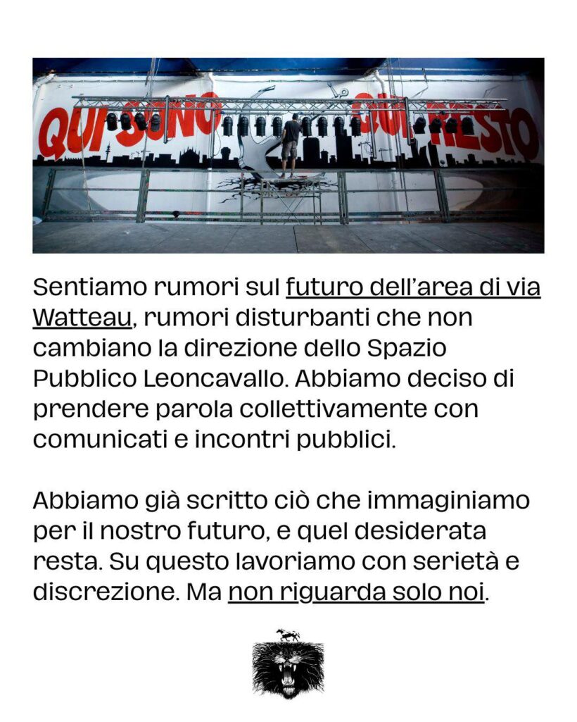 Sentiamo rumori sul futuro dell’area di via Watteau, rumori disturbanti che non cambiano la direzione dello Spazio Pubblico Leoncavallo. Abbiamo deciso di prendere parola collettivamente con comunicati e incontri pubblici.